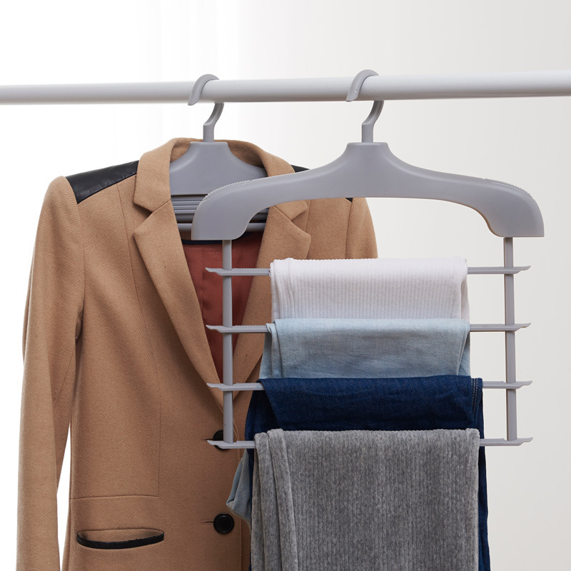 多目的収縮可能なズボン掛け家庭用の広い肩滑り止めハンガーのズボン掛けの多層両用プラスチックハンガー