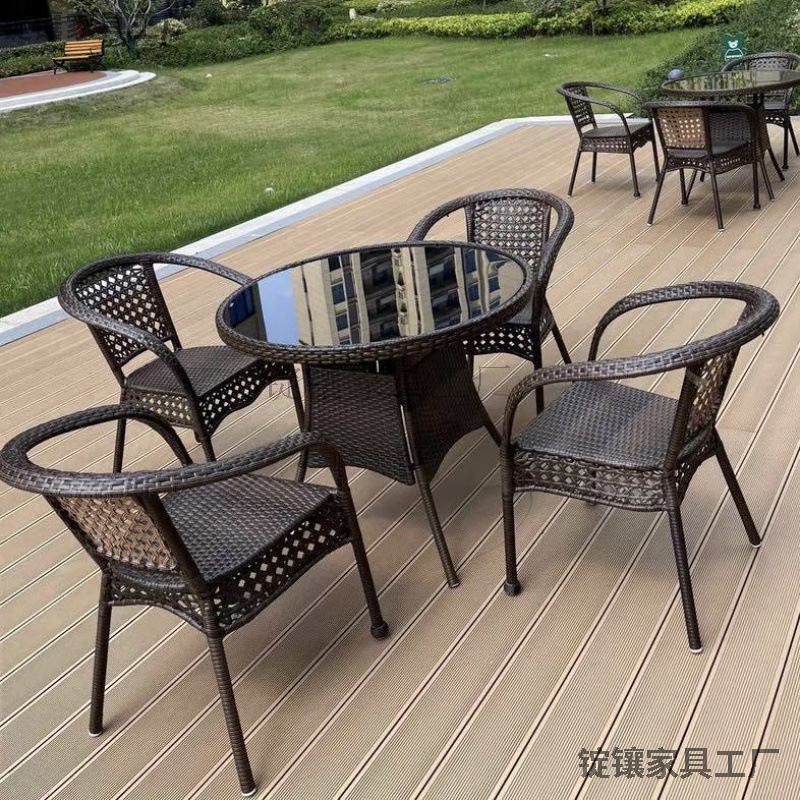 ベランダのテーブルと椅子と椅子の三つのセットのベランダのレジャーテーブルと椅子の藤の椅子