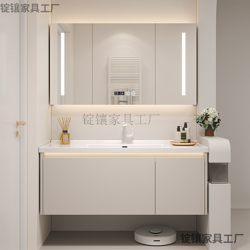 3wクリーム風浴室キャビネットセットセラミック一体手洗い洗面器トイレ洗面台実木軽豪華風呂