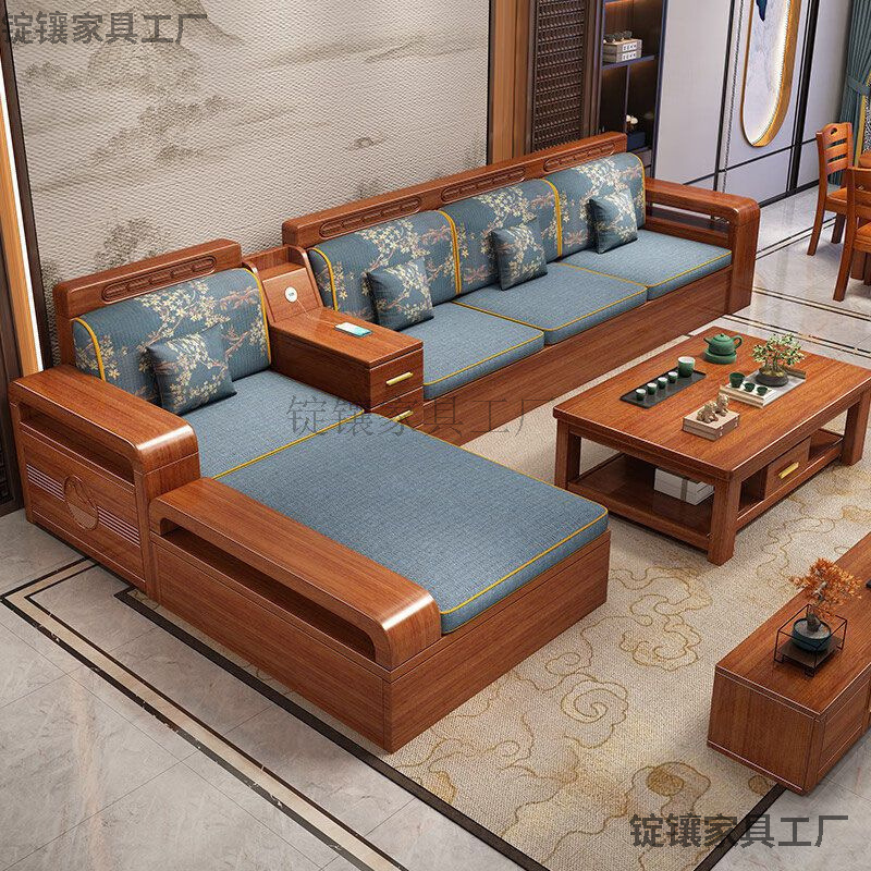 新中国式胡桃木実木ソファー客間小戸型全実木組合せ冬夏両用高箱貯蔵ソファー