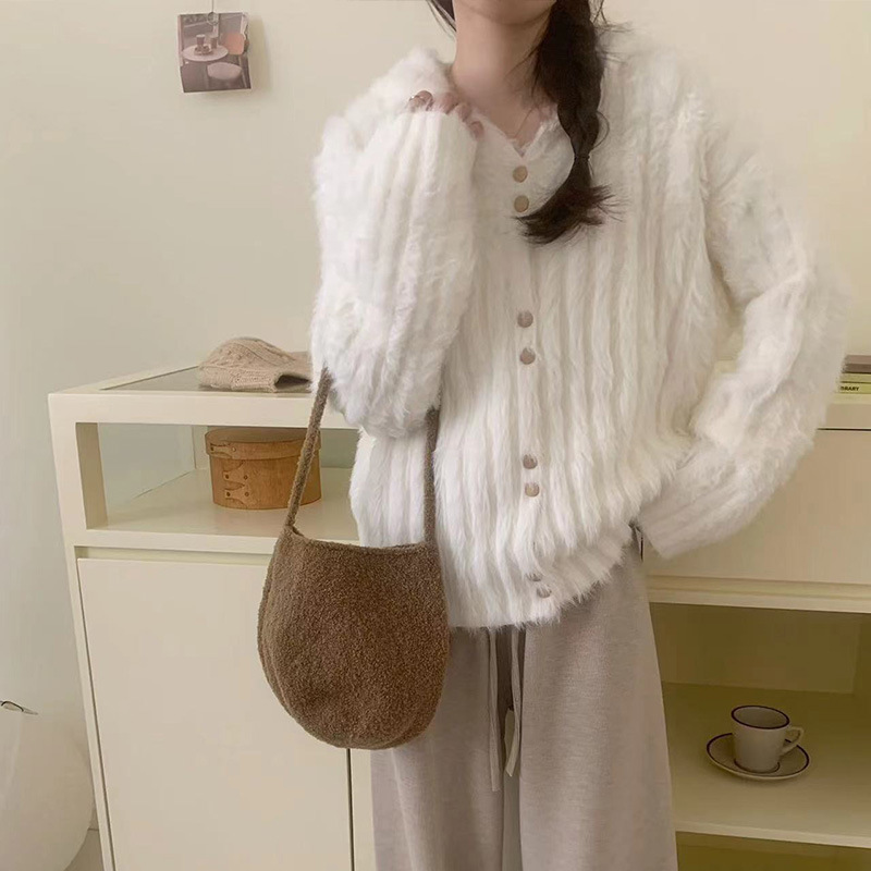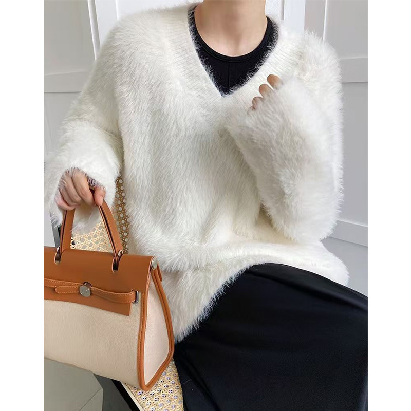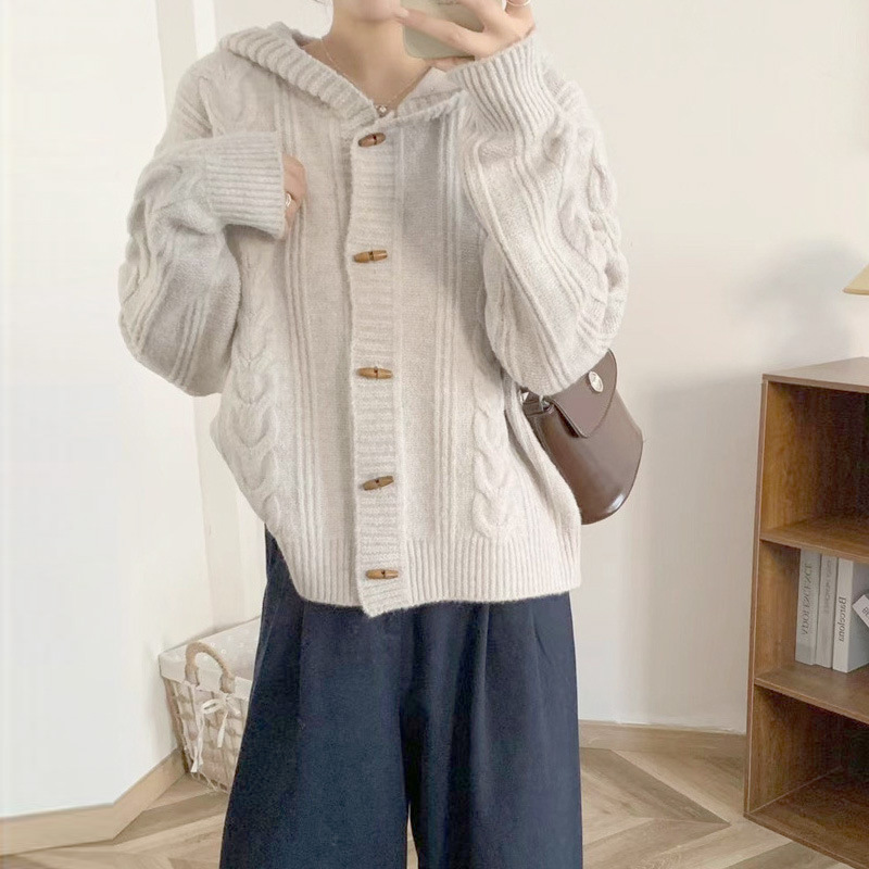 ミンクの毛のセーターのコートの女性の秋冬の新型の韓国系の帽子の怠惰な風の柔らかいモチモチの毛羽立ちの厚いピットのニットのカーディガン