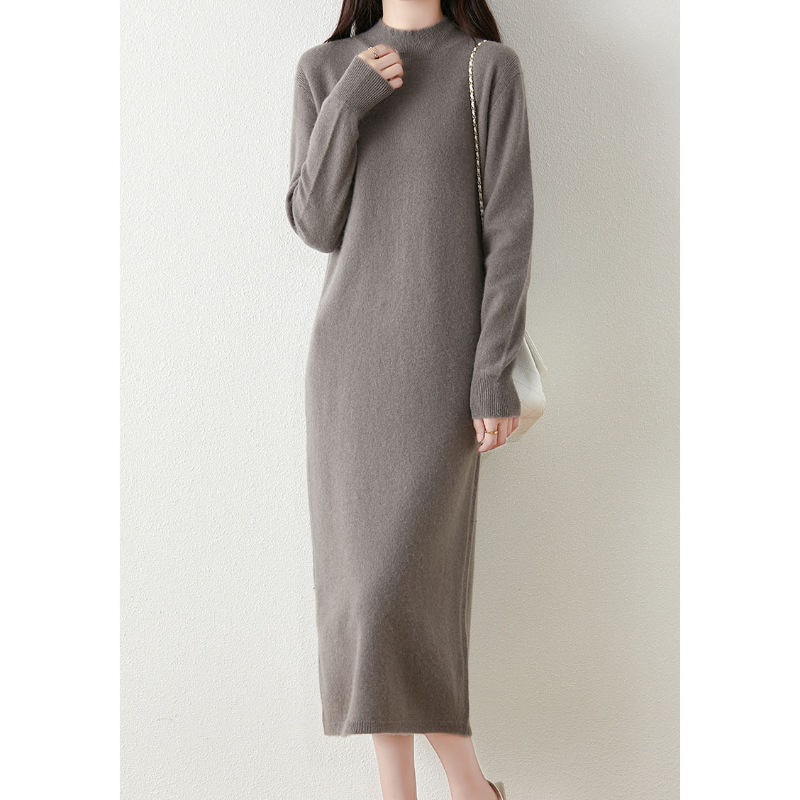 半高襟の純色の基礎モデルのウールのスカートの女性の秋冬の越境の気質の通勤風の長いタイプは底のニットのワンピースを打ちます。