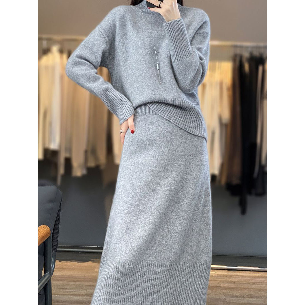 高襟セーターセット秋冬新作純色シンプルカジュアル怠惰風気質プルオーバー