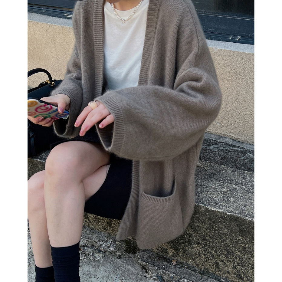 クロスボーダーの外国貿易の中の長いタイプの怠惰なセーターのコート秋冬の韓国系の新型の純色のゆったりしている大きいサイズのニットのカーディガンの女性