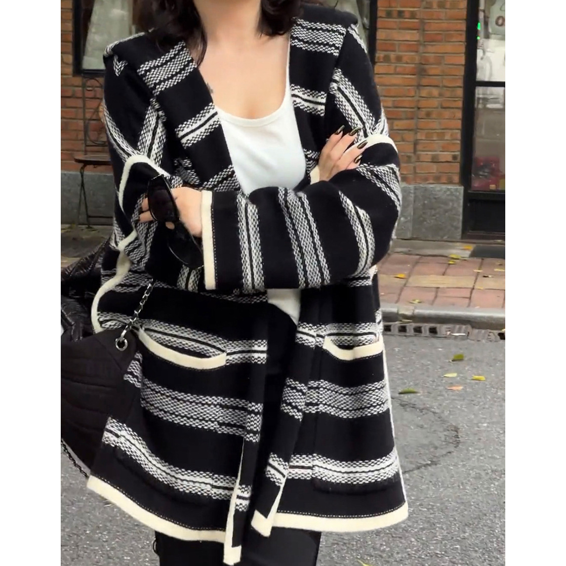 欧米風のセーター秋冬の新型のストライプは帽子と一緒に怠惰です。