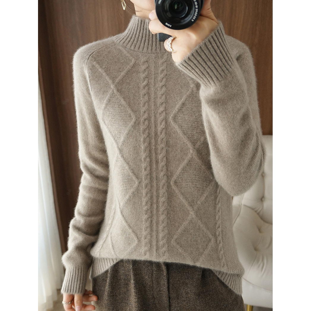 半高襟のニットは新しい秋冬の新型の韓国系の麻の花のシンプルで怠惰な風の越境のセーターの底のシャツを掛けます。