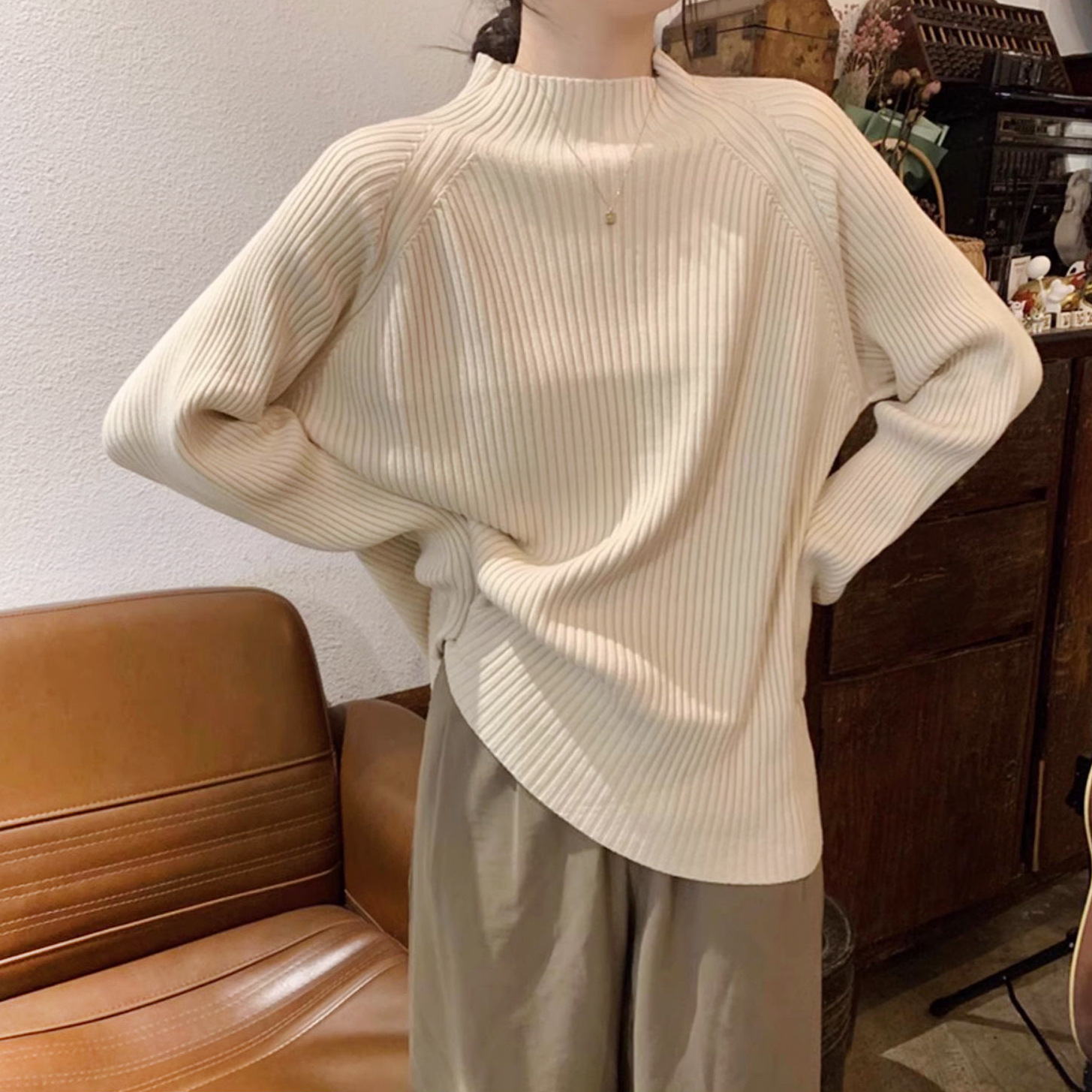 半高襟坑条の純色のシンプルなセーターの中に韓国版の百合の新型の2024秋冬の底のニットの女性を掛けます。
