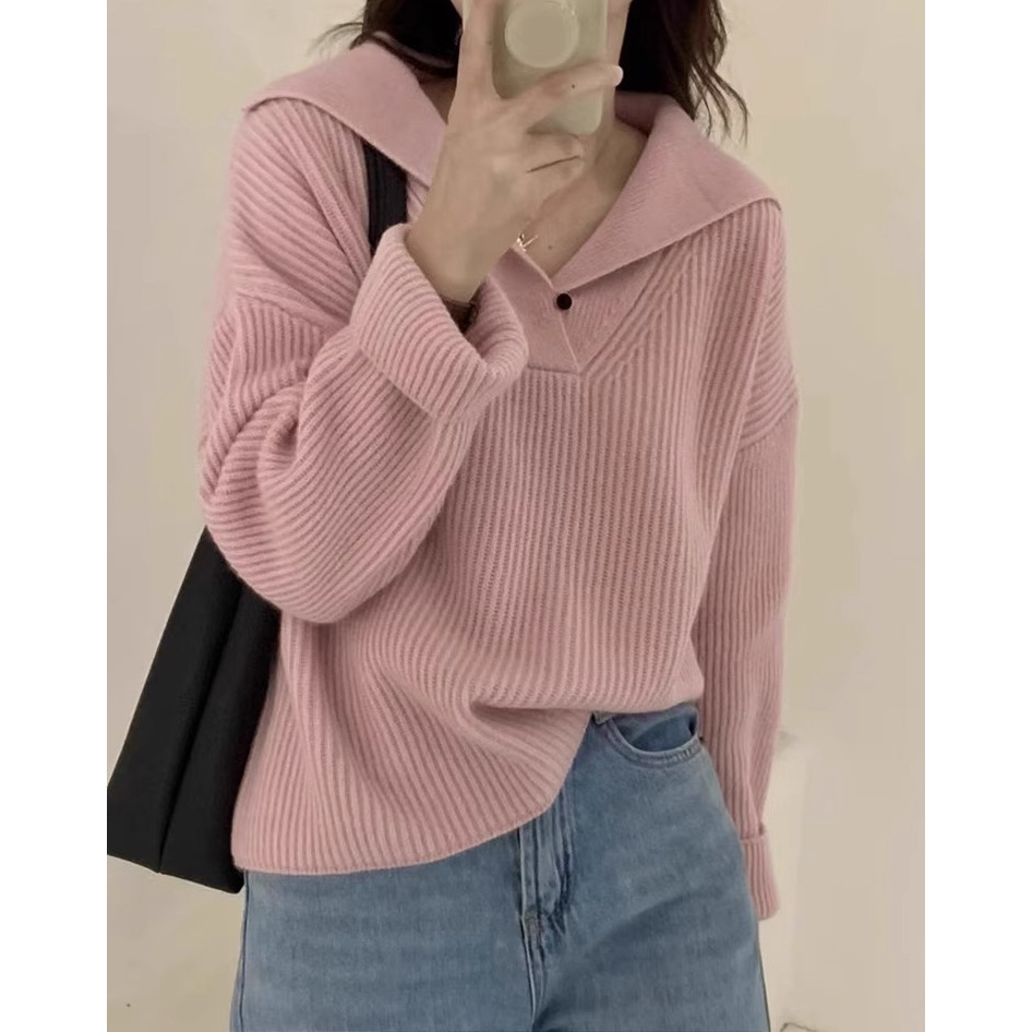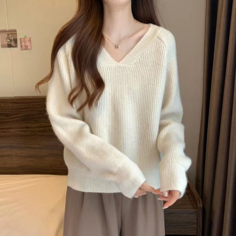 Vネックの純色の百合セーターの中に秋冬の新型の韓国系の優しい風の柔らかいモチとした怠惰な対外貿易の底のニットウェアを掛けます。