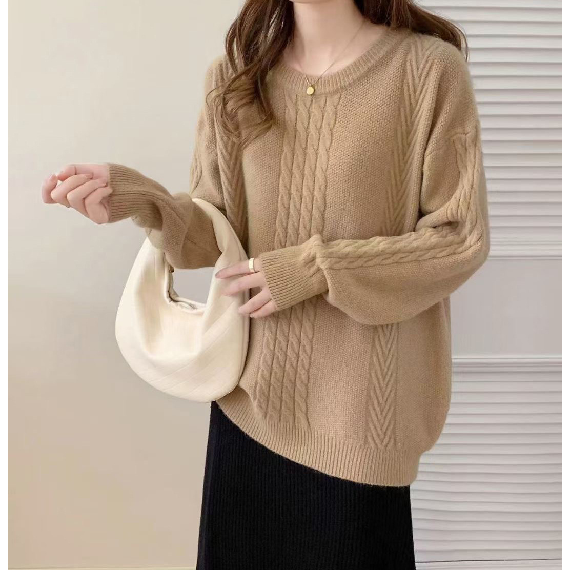 麻の花のニットのプルオーバーの女性の秋冬の新型の韓系の丸首のねじの怠惰な風の越境する対外貿易の厚い底のセーター