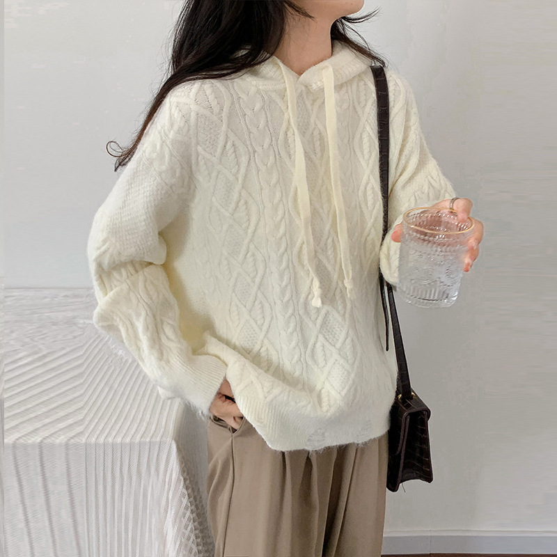 帽子の幾何学の麻の花の怠惰な風のプルオーバーのセーターの秋冬の2024の新型の越境の対外貿易の大きいサイズの厚いニットの女性