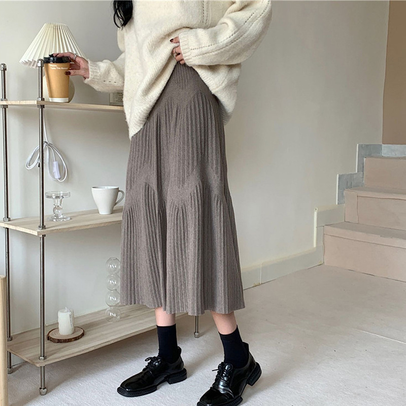 韓国系の垂感ニットの半身のスカートは秋冬の新型の中で長いです。