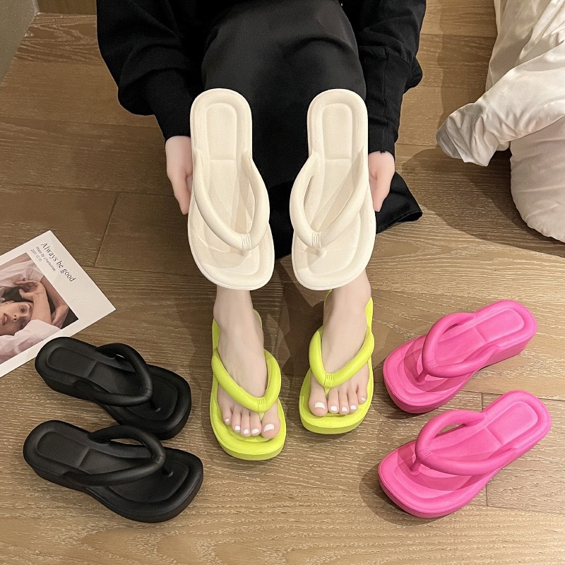 女性の厚い底のカジュアルな人の字は新型の家の夏に足の純色のサンダルを挟みます。
