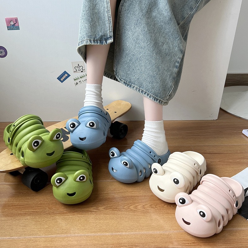 女性の穴の靴の夏のかわいい風の毛虫の漫画の親子の冷たいスリッパの家具は柔らかい底の包頭に住んでいます。