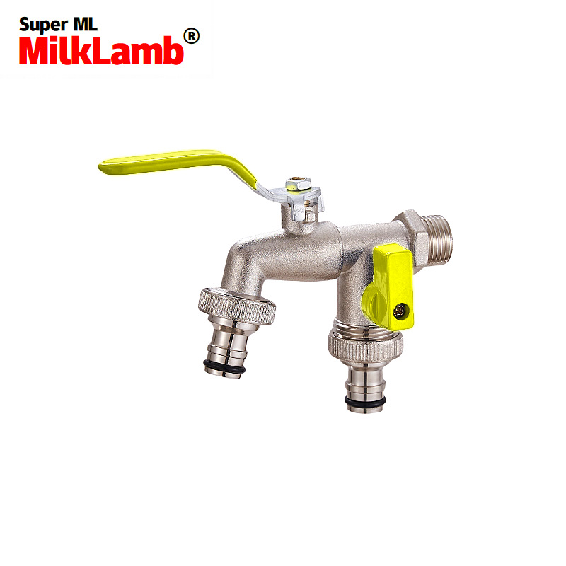 国境を越えて園芸用の二重出水亜鉛合金ノズル一進二出二重乳首、ベルト蛇口【黄】