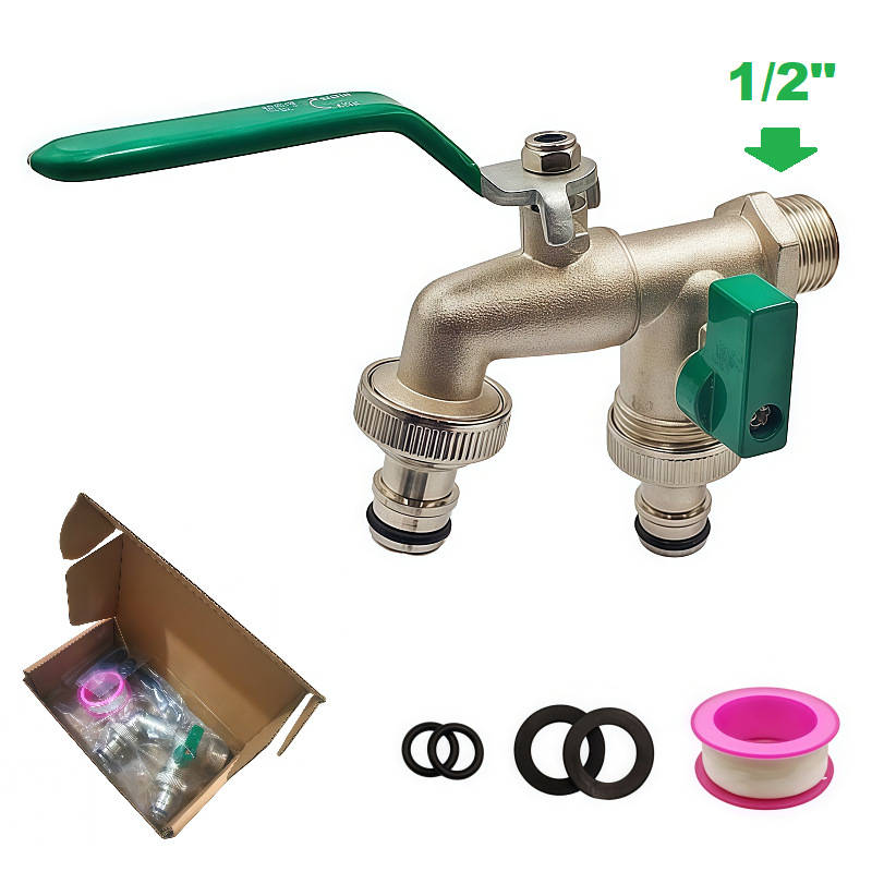 クロスボーダー専用1/2園芸亜鉛合金ダブル排水口一進二出ダブルおしゃぶり蛇口【緑】