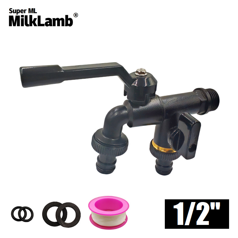 クロスボーダー専用1/2ガーデニングダブル出亜鉛合金ノズルワンイン2アウトダブルおしゃぶり蛇口【オールブラック】
