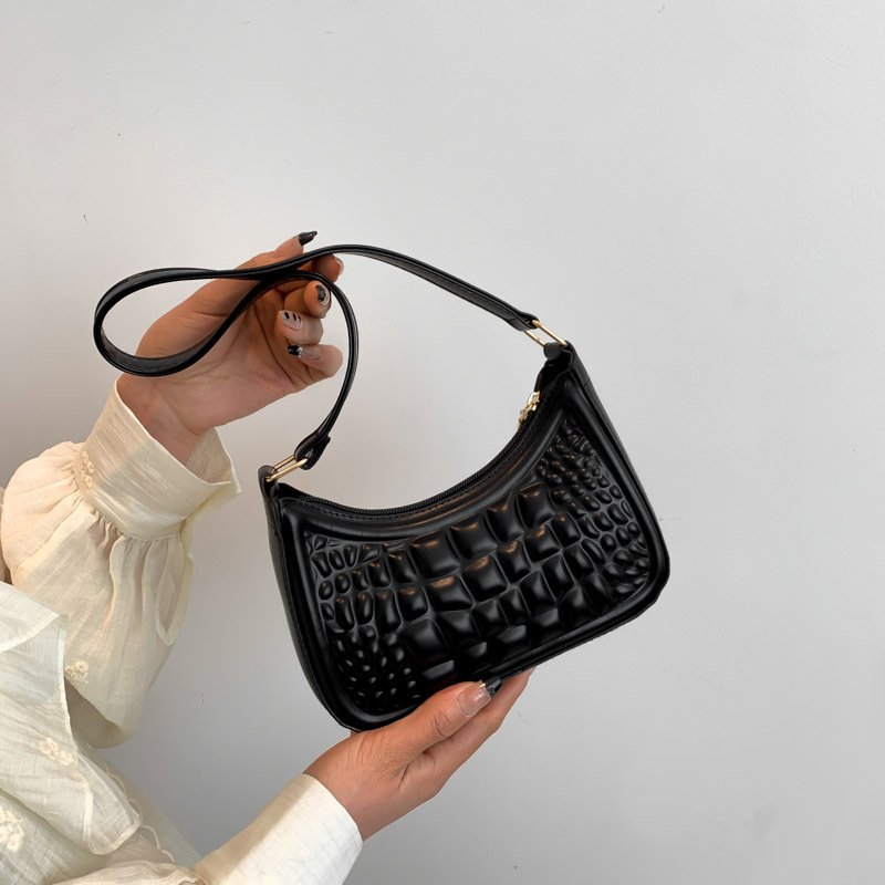 メーカー直販小衆デザインワニ紋バッグ女2024新純色百合シングルバッグ手提げ脇下バッグ