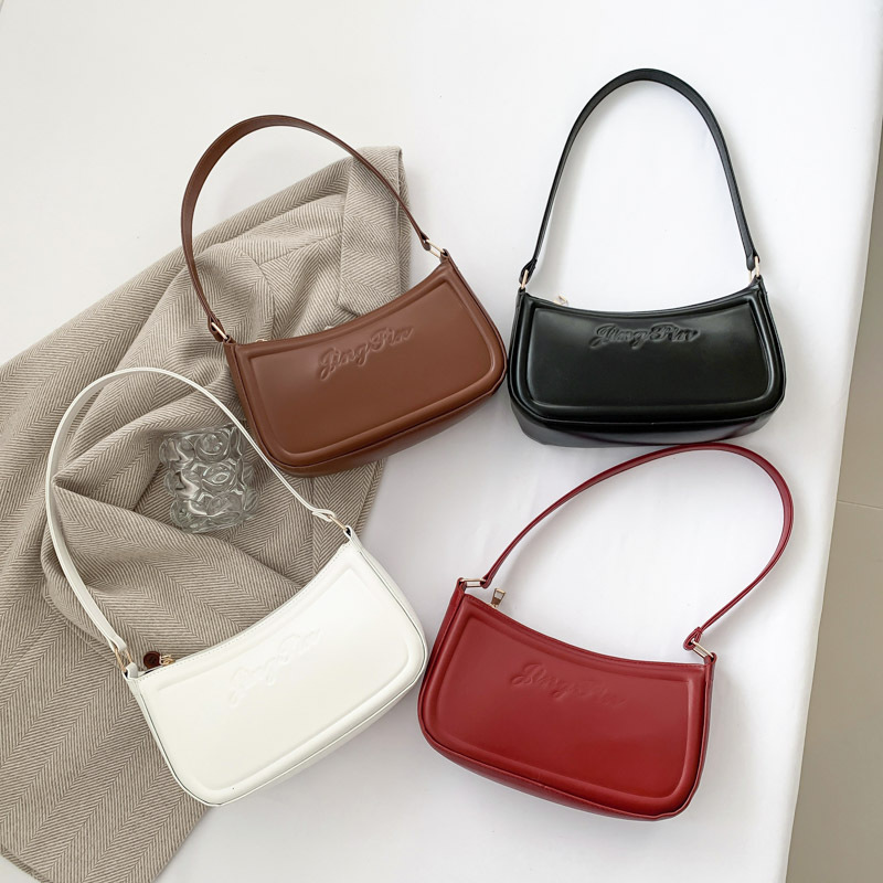 国境を越えたフランスの小さな文字のプリントバッグ女性2024の新しい純色のファッションシングルバッグの腋の下バッグ