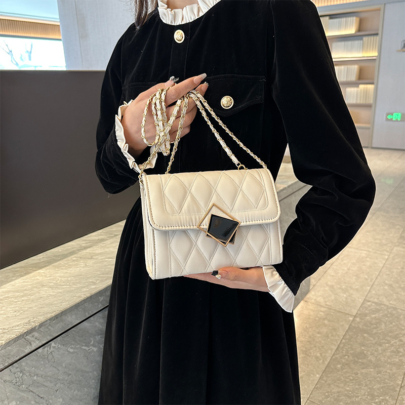 国境を越えて今年流行したバッグ女2024新型ファッショントレンドシングル肩斜めショルダーバッグ刺繍チェーン小方バッグ