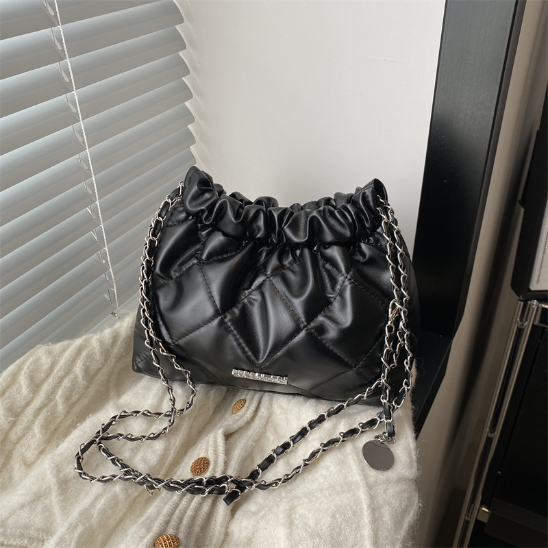 柔らかい皮の大容量のファッションのしわのチェーンのショルダーバッグ2024の新型の洋風の百合はバケツを持って斜めにショルダーバッグを包みます。