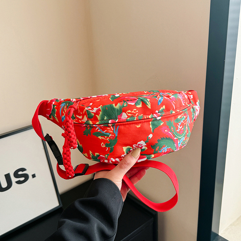 2024新型国潮胸包東北大花洋気斜めショルダーバッグ個性百合プリントファッション百合ウエストバッグ女
