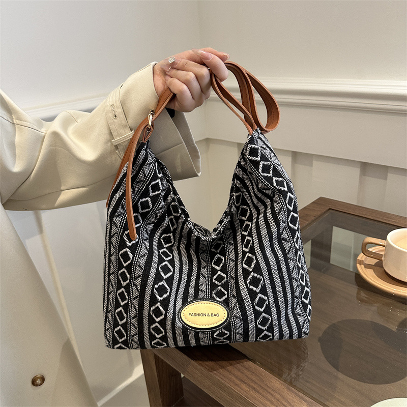 レトロな文芸格子縞のショルダーバッグは女性2023の新しいファッション民族風の格子縞が通勤している