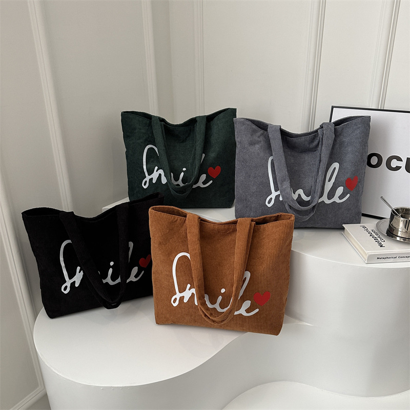 ファッショントレンド大容量アルファベットハートコーデュロイトートバッグ2023新品通勤ワンショルダートートバッグ