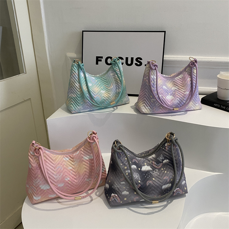 かわいいアニメ雲落書き染めバッグ女2023新清新で甘い三日月包片肩包腋の下包