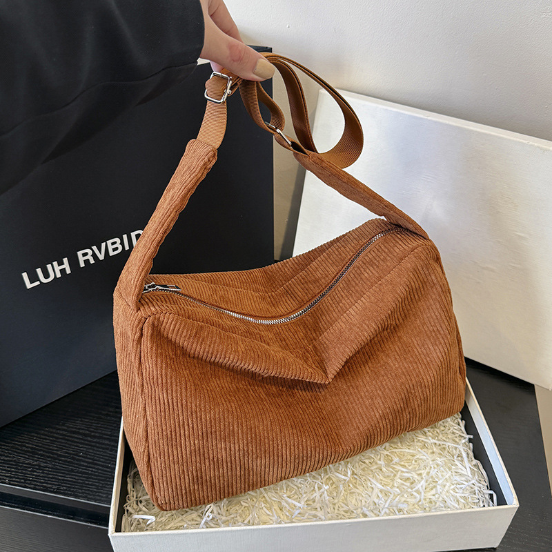 国境を越えた大容量のコーデュロイの上品なバッグ女性2023の新しいファッションのシンプルな文字に合わせて、シングル肩の大きなバッグを持っています