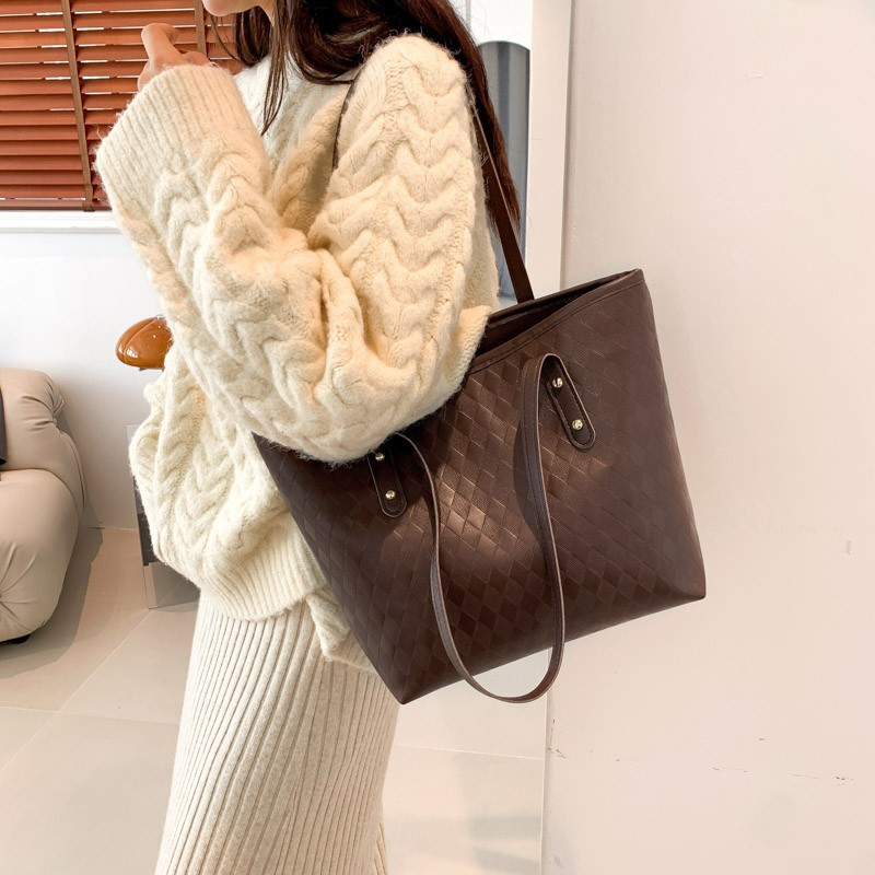 菱格圧痕大容量バッグ女性2023新型ファッションファッションバッグ流行純色通勤ショルダーバッグ