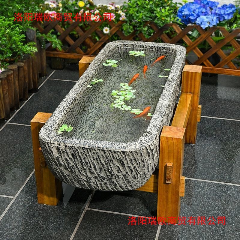 屋外中庭長方形樹脂石トラフ大型水槽レトロな魚のプール庭の装飾品と造園レイアウト