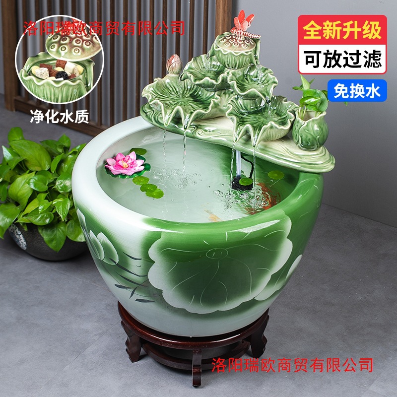 景徳鎮セラミック金魚水槽バルコニーオフィスリビングルーム床置き家庭用循環水装飾品中庭大型水槽