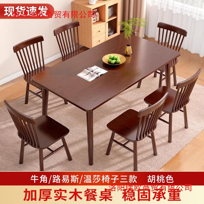 全無垢材のダイニングテーブルと椅子の組み合わせダイニングテーブル家庭用小型ウォールナット色の木製テーブルモダンなシンプルな長方形のダイニングテーブル