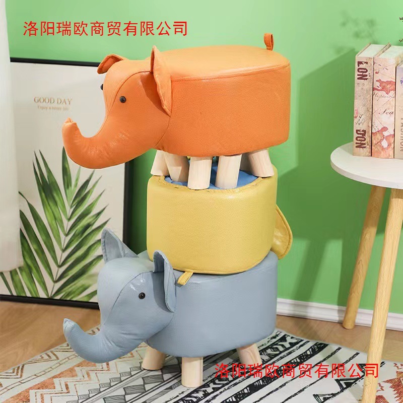 インターネット有名人象スツール子供動物スツール無垢材靴交換スツールクリエイティブ小さなスツールホームリビングルーム漫画かわいい低スツール