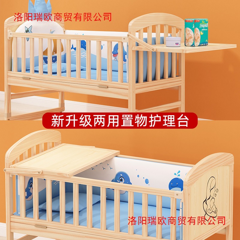 Shuertangfang ベビーベッドベビーベッド取り外し可能な新生児ベビーベッド子供用多機能無垢材クレードルスプライシング大型ベッド