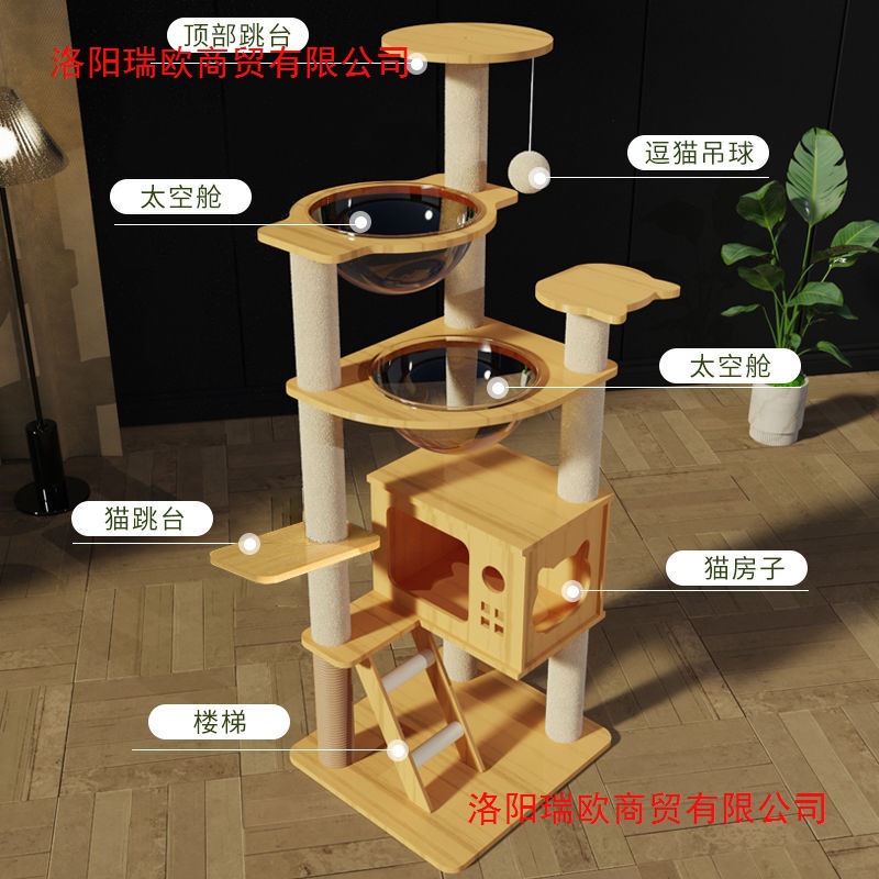 大型無垢材猫クライミングフレーム、オールインワン、オールシーズン対応、大型猫用大型スクラッチボード、スペースカプセル、太った猫のおもちゃ、スクラッチポール、耐摩耗性