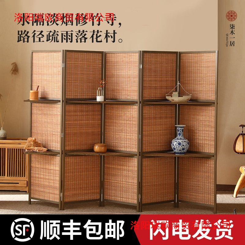 無垢材スクリーンパーティションリビングルームエントリーブロックルームオフィス新しい中国風折りたたみモバイルフロアレトロティールーム