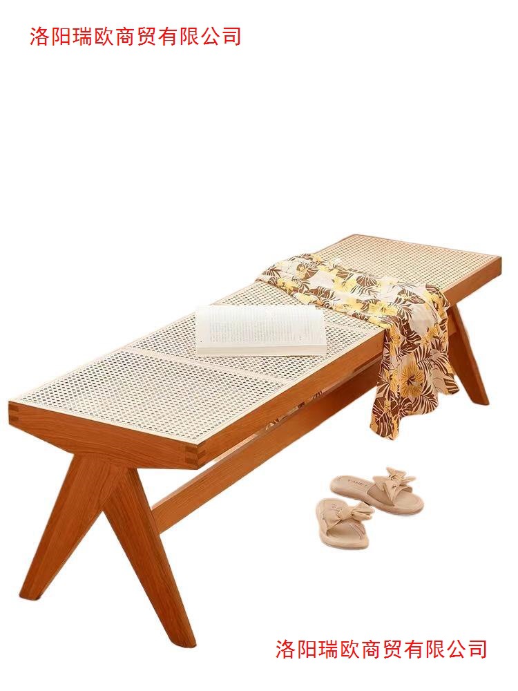 無垢材籐ベンチ チャンディガルチェア 中古ベンチ 日本のデザイナー レトロ ホーム ホームステイ 靴交換ベンチ