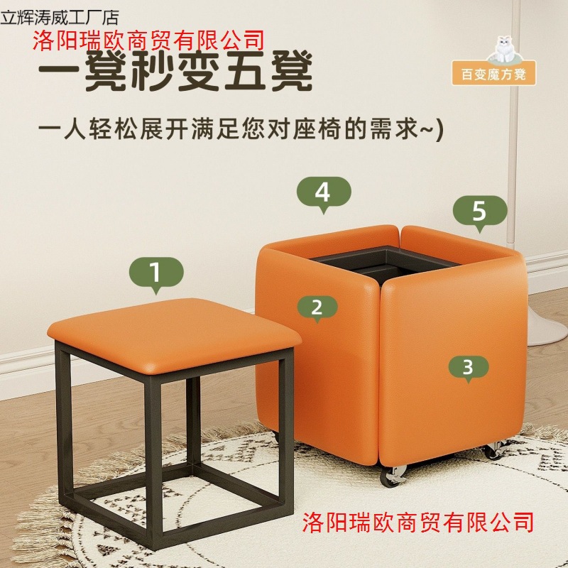 ルービックキューブスツール北欧ネット有名人収納スツール靴交換スツール多機能小型スツール折りたたみベンチ5イン1コンビネーションスツール