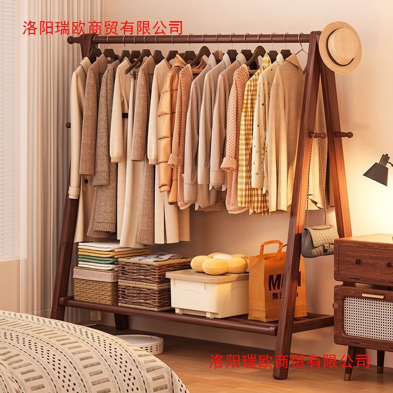 無垢材のコートラック、家庭用床置き寝室用衣類ラック、屋内バルコニー用衣類ラック、折りたたみ式衣類ラック