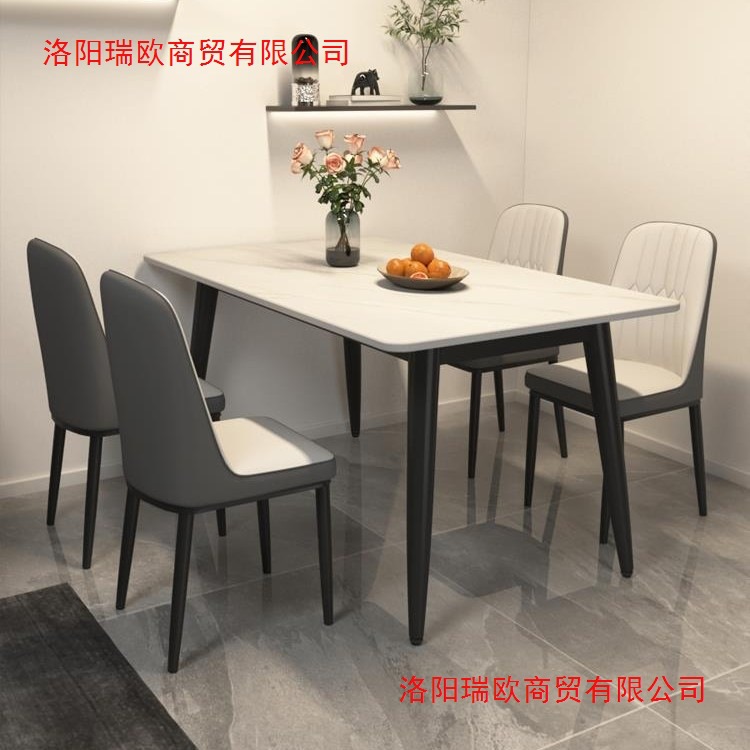 家庭用小さなマット厚みのあるダイニングテーブル用のスレートダイニングテーブルと椅子の組み合わせ、モダンでシンプル、軽い高級感、光沢のある光沢のあるテーブル
