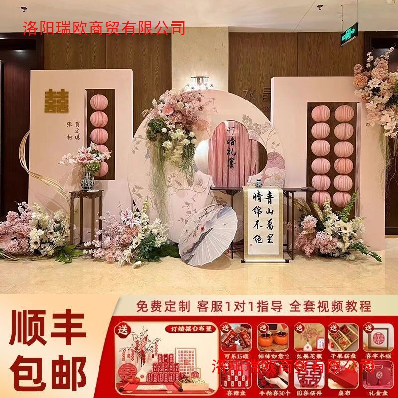 新しい中国風の婚約アレンジメント装飾ピンク背景壁シーン装飾装飾品フルセットシンプルなボード用品