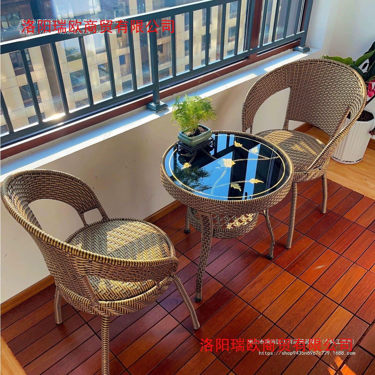 籐椅子 3 点セット ティーテーブル ホームバルコニー レジャーテーブルと椅子 屋外中庭 テンチェア 小さなコーヒーテーブル 組み合わせ 屋外