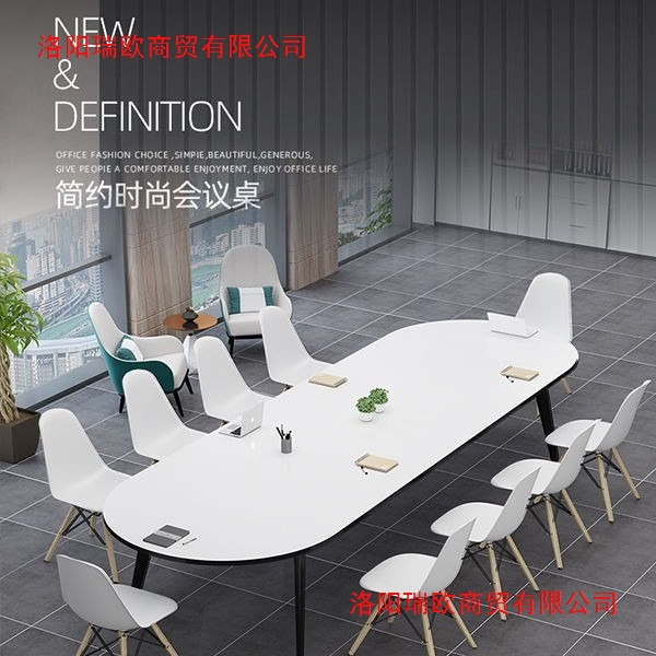 楕円形のテーブル、円弧状のライトラグジュアリー、モダンな商談テーブルと椅子の組み合わせ、ワークベンチ、会議テーブル、小人数用