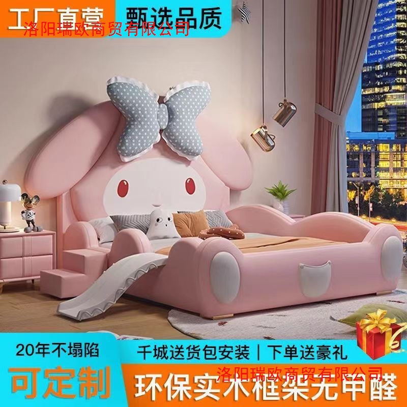 子供用ベッド ピンク 女の子 プリンセスベッド ガードレール付き スライド 小型 レザー ソフトパック 無垢材ベッド かわいいウサギのベッド