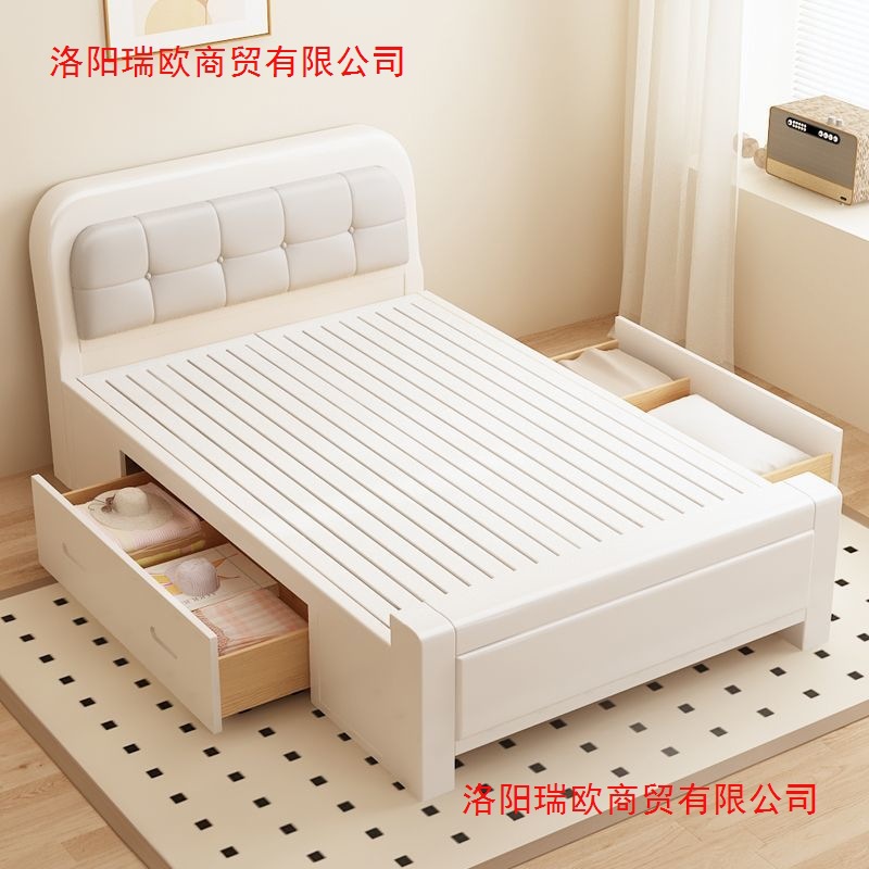 無垢材のベッド。米シングルベッド、白クリーム風ベビーベッド、小さなアパート、シンプルな子供用セカンドベッド、ソフトベッド