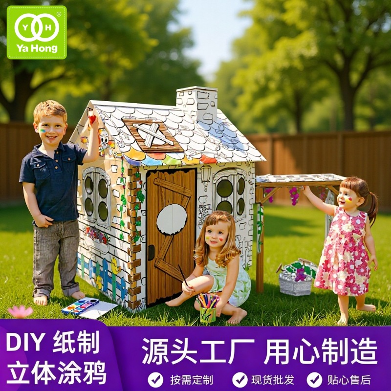 国境を越えた段ボール製大型手作りDIYクリエイティブドールハウス組み立て落書きモデル子供用卸売3歳親子向け