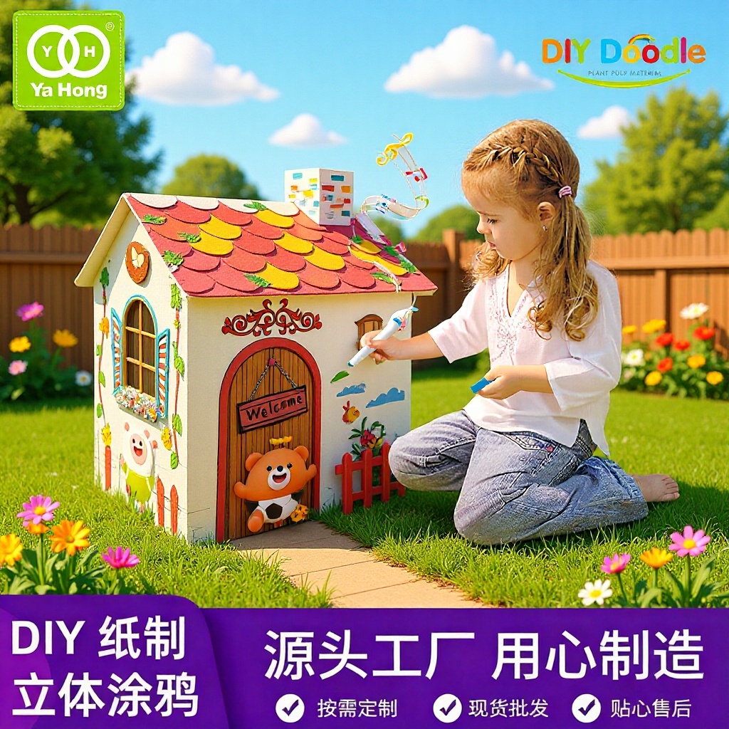 国境を越えたクリエイティブギフト DIY 落書き段ボールハウス子供用絵画組み立ておもちゃロケットハウス教育早期教育卸売