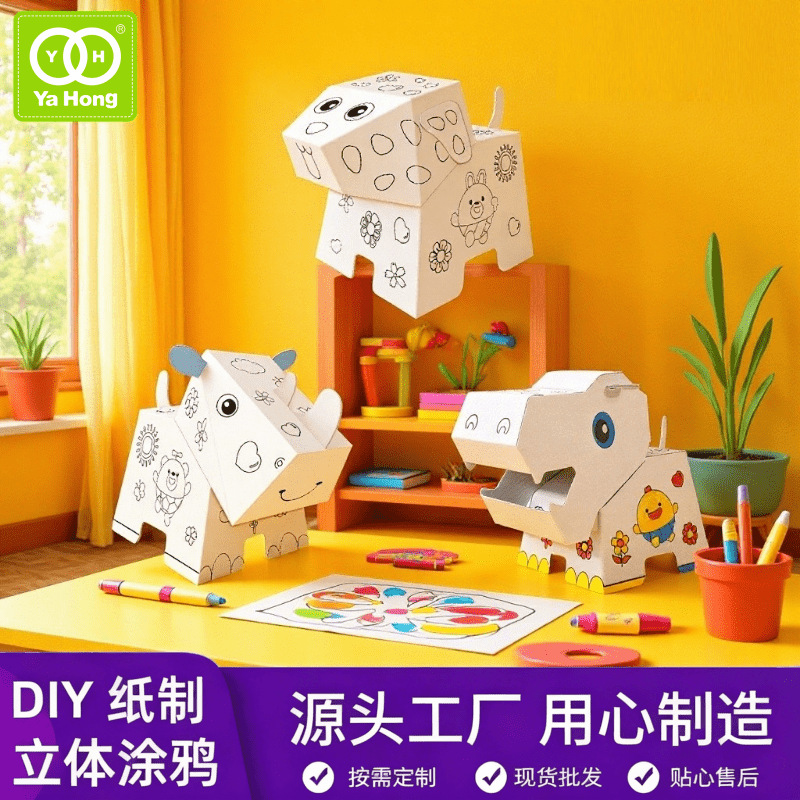 3d立体DIY落書き板紙はおもちゃの子供を作って紙の箱の落書きの動物の益智を詰めます。