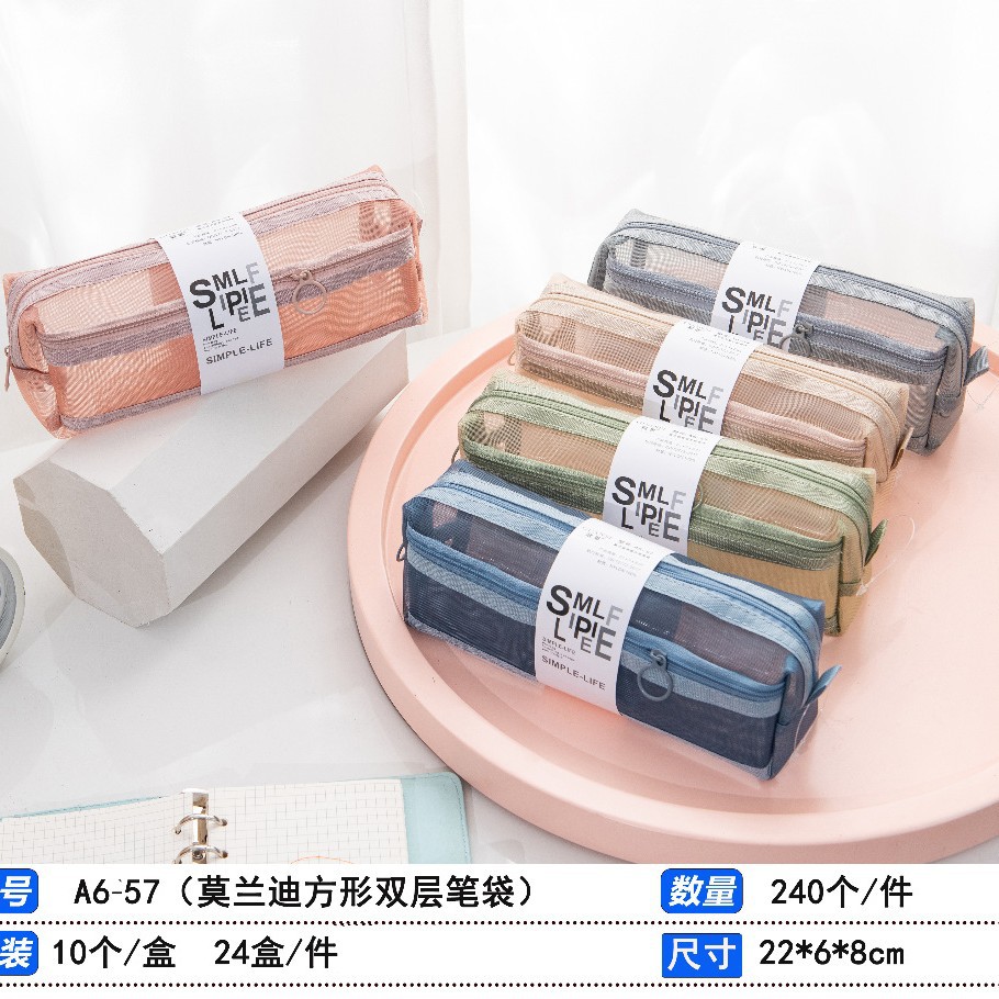 A6-57モランディ網糸二重方形筆袋モランディ系シンプル網糸収納学生筆袋